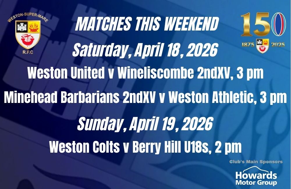 Weston Athletic (away v Minehead Barbarians 2ndXV, 3 pm): Rich Frost; Felix Rawlings, Dom Hawkins, Dan Prime, Adam Lee; Adam Budd, Clayton Dorrington; Lucas Williamson, Ethan Westlake, Ryan Donegan, Rhys Matthews, Kieran Van Rassel, Rich Bishop (capt), John Fleming, Mark Walker. Reps: Stephen Donegan, Ryan Jones, Blake Knowlson, Zain Ishaq.
